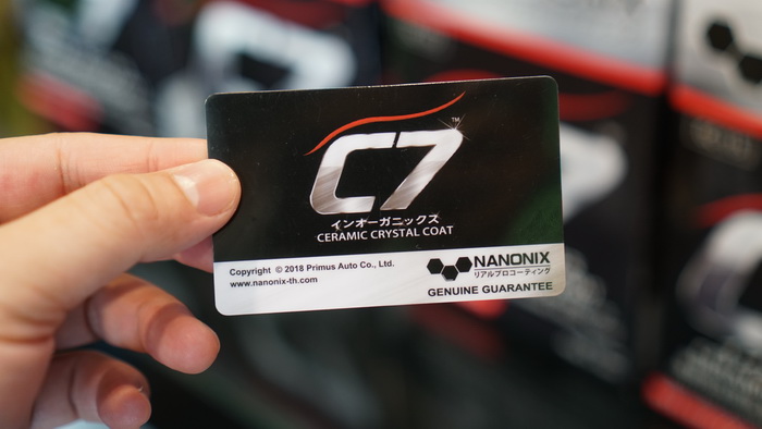 สำหรับลูกค้าที่เข้ารับบริการเคลือบแก้ว NANONIX C7, NANONIX Prestige, NANONIX Diamond ทุกท่านจะต้องได้รับบัตรรับประกัน NANONIX Guarantee Card (บัตรแข็ง) โดยด้านหลังบัตรจะระบุ Serail No. เพื่อตรวจสอบว่ารถของท่านได้รับการพ่นเคลือบด้วยน้ำยาเคลือบแก้ว NANONIX แท้ 100% จากประเทศญี่ปุ่น เพื่อป้องกันการแอบอ้างการใช้น้ำยา สามารถตรวจสอบข้อมูลโทร 081-422-4177 หรือ LINE : @NANONIX