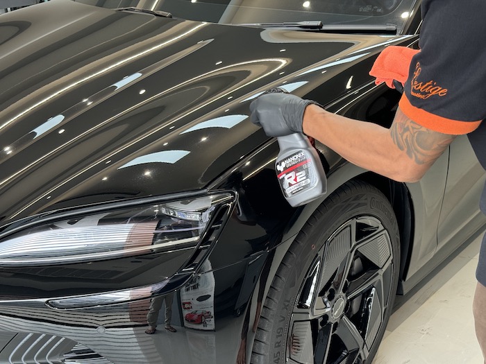 ขั้นตอนที่ 1 : R1 CARBON แนะนำใช้กับดินน้ำมัน Zero Clay ช่วยยกระดับผิวสีรถ ฟื้นฟูให้เรียน ลื่น เงา ทันที ขั้นตอนที่ 2 : R2 GRAPHENE (สูตรใหม่ x20) ช่วยเคลือบสร้างชั้นฟิล์มแก้วกราฟีน เงา หนา แกร่ง ปกป้องสีรถได้อย่างดีเยี่ยม ป้องกันน้ำและสิ่งสกปรก หยดน้ำกลม 110 องศา เหมือนหยดน้ำกลิ้งบนใบบอน ปกป้องได้ยาวนานหลายเดือน